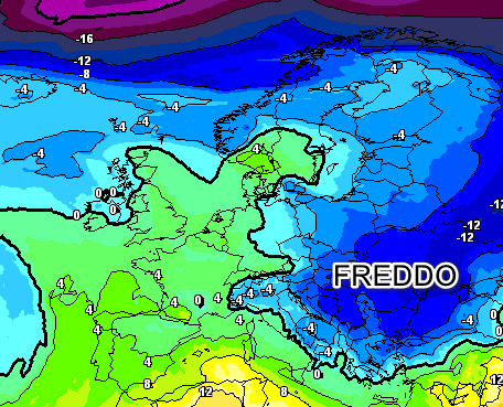 La colata fredda colpirà in modo particolare i Paesi dell’Europa orientale e di striscio anche la nostra Penisola. Sulla verticale del nord-est e del versante adriatico compariranno a 1500 metri valori termici attorno a -4/-5°. Lungo il versante tirrenico la fase fredda sarà meno avvertita, mentre al meridione e sulle Isole lo Scirocco finalmente cesserà ed avremo un sensibile calo termico con anche un po’ di freddo sul meridione peninsulare.