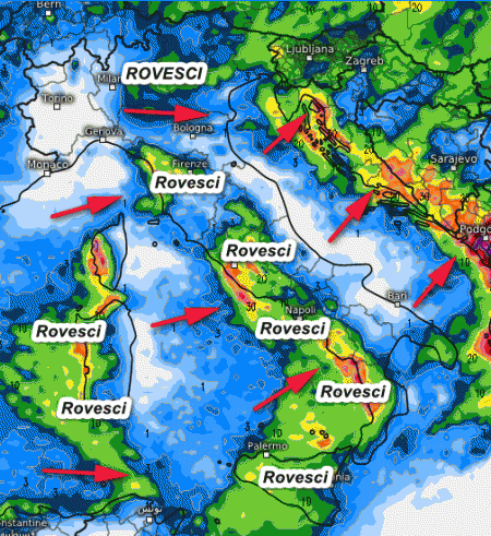 Rovesci al nord, ma in attenuazione e spostamento verso est nell’arco della giornata con schiarite da ovest. Rovesci ancora possibili lungo il versante tirrenico, le aree interne, la Sardegna occidentale e la Sicilia. Asciutto invece il versante adriatico e ionico. MASSIMA ATTENZIONE ai venti forti tra ovest e sud-ovest con mareggiate lungo le coste esposte. In serata si prevede comunque una generale attenuazione dei fenomeni e del vento.