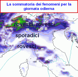 Rovesci soprattutto a ridosso dei rilievi per effetto stau indotto da una sostenuta ventilazione sud occidentale. Giovedì qualche fenomeno tra nord-est e Toscana, per il resto tendenza a temporaneo miglioramento, caldo in aumento al sud e sulle isole. Venerdì incerto sulle regioni centrali, schiarite al nord, ma con tendenza a nuovo peggioramento, che persisterà per tutto il week-end, ancora più caldo al sud. Lunedì un po' instabile ovunque, caldo in attenuazione al sud.
