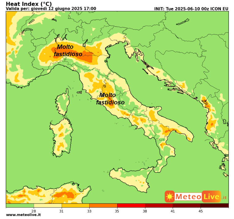 Giovedi 12 e venerdi 13 CALDO MOLTO FASTIDIOSO su queste regioni