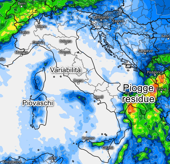 Infine, queste sono le precipitazioni attese in Italia nell’arco della giornata di venerdi 6 dicembre:
