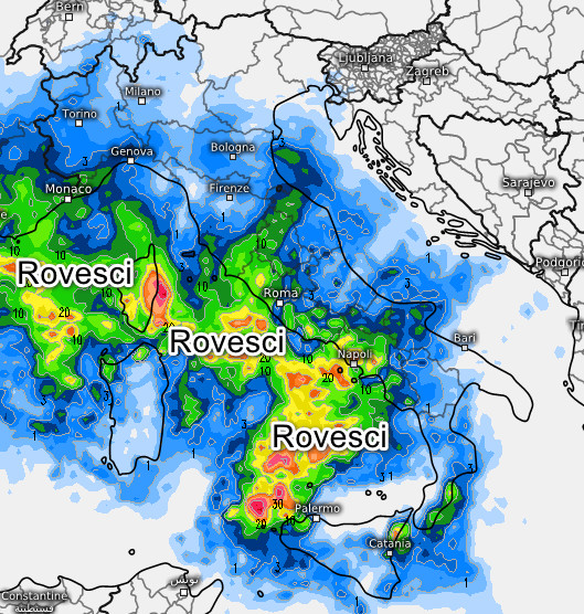 Infine, queste sono le precipitazioni attese in Italia nell’arco della giornata di venerdi 13 dicembre: