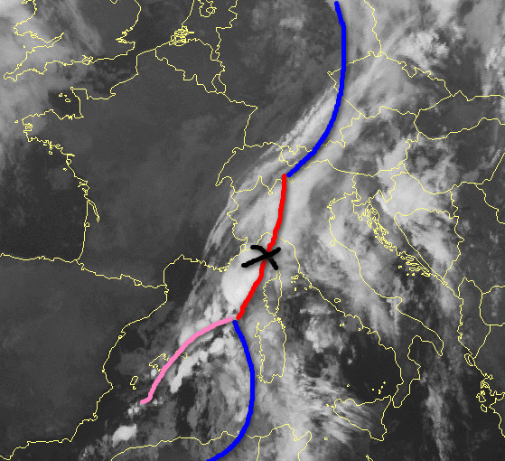 Il sistema frontale si distende al momento dal nord Africa fino all’Europa centro-settentrionale. Il suo movimento verso levante è stato fino ad ora abbastanza veloce. Giungendo sull’Italia la perturbazione sta rallentando la sua marcia, vuoi per l’ostacolo imposto dai rilievi e del mare ancora abbastanza caldo, ma soprattutto a causa di una zona di alta pressione posta più ad est. Nelle prossime ore, pertanto, la perturbazione tenderà a spezzarsi: la parte settentrionale sfilerà verso l’Europa centro-settentrionale mentre la parte meridionale scivolerà sul Tirreno, andandosi ad annidare addirittura sullo Ionio, prima di morire definitivamente nella giornata di sabato.