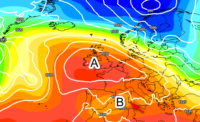 Alta pressione forte e tenace su buona parte del nostro Continente, compresa anche gran parte d’Italia. Blocco completo delle perturbazioni atlantiche che resteranno ferme al palo ancora per diverso tempo. L’unica area che resterà vulnerabile sarà ubicata alle basse latitudini del Mediterraneo occidentale dove agirà una blanda depressione. Questa potrebbe dare effetti sulla Sardegna e marginalmente sulla Sicilia durante il fine settimana con alcuni rovesci localmente di forte intensità.