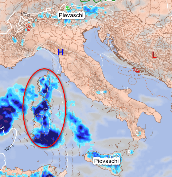 Ancora rovesci talora intensi sulla Sardegna, specie tra il pomeriggio e la serata. Piovaschi anche in Sicilia ed in prossimità della fascia alpina e prealpina centro-orientale, ma cose di poco conto. Aumenterà la nuvolosità lungo il Tirreno e sul nord-ovest, ma non arriveranno piogge, per il resto situazione immutata.