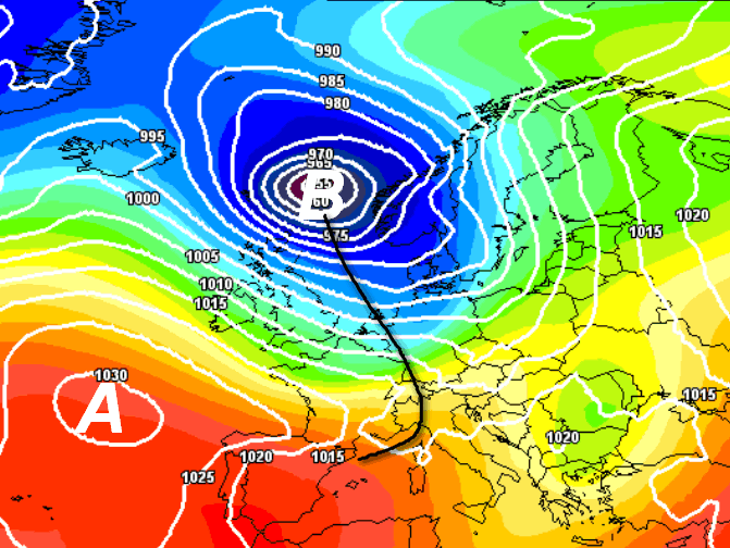 La struttura di bassa pressione sarà centrata a nord-est della Scozia e porrà al suo interno una pressione di 965mb, un valore più consono alla stagione invernale rispetto all’autunno. L’Italia subirà un interessamento marginale e veloce, anche se qualche rovescio o temporale potrebbe rovinare il week-end di alcune regioni.