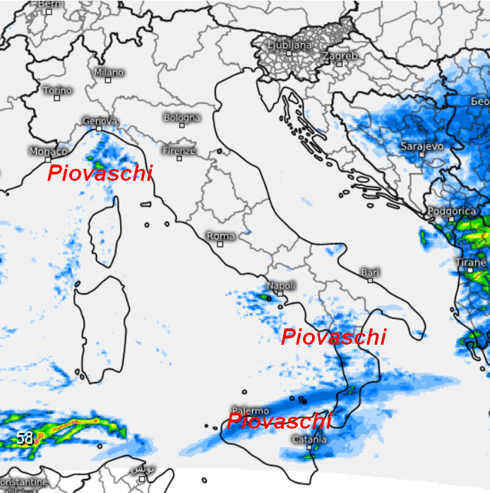 Il tempo al meridione tenderà a migliorare, ma resteranno piovaschi tra la Sicilia e la Calabria. Sul resto d’Italia tempo asciutto e soleggiato a parte qualche piovasco al largo sul Golfo Ligure, ma senza raggiungere le coste.