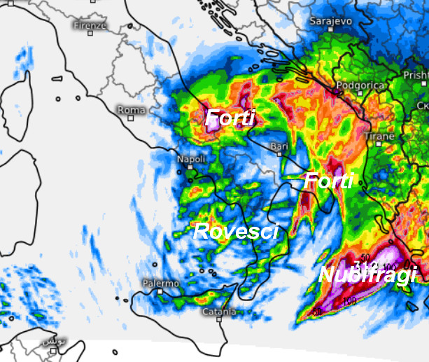 Sarà ancora una giornata abbastanza difficile per le regioni meridionali. Rovesci intensi e temporali colpiranno in modo particolare il Molise e la Puglia Garganica. Rovesci anche su Lucania, Calabria, il resto della Puglia (forti sul Salento) e la Sicilia settentrionale. Non si esclude nell’arco della giornata un parziale coinvolgimento anche dell’Abruzzo. Su tutte le altre regioni assenza di fenomeni, ma temperature in moderato calo per venti freschi da nord-est.