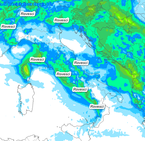 Vediamo comunque la sommatoria delle precipitazioni attese oggi in Italia fino alle 00 su sabato 4 maggio: