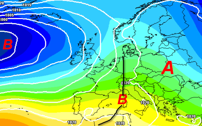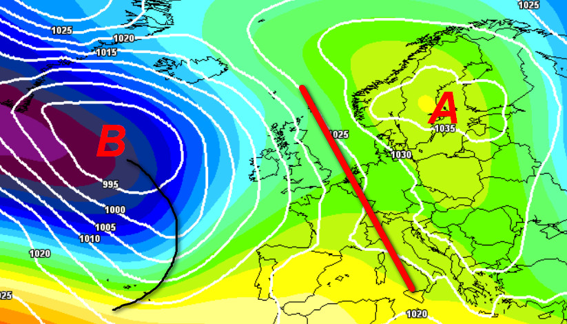 Le correnti atlantiche potrebbero avere la meglio sull’alta pressione presente ad est, anche se il blocco non verrà rimosso completamente. Sul Mediterraneo potrebbe infilarsi una perturbazione con annessa depressione; di conseguenza il maltempo sarebbe presente sui gran parte d’Italia, con possibili nevicate a quote medio-basse specie al nord e al centro.