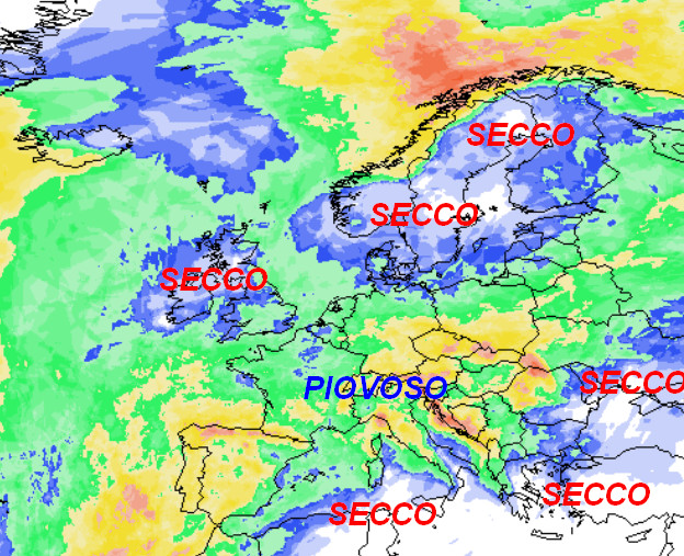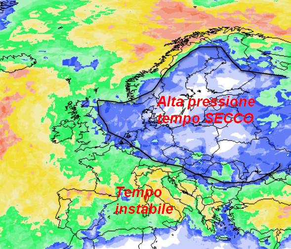 Un vasto “buco precipitativo” sarà presente su quasi tutta l’Europa orientale e la vicina Russia dove campeggerà una forte zona anticiclonica. L’Italia non farà parte del gruppo ed avrà ancora tempo instabile con frequenti piogge e temperature nel complesso fresche.