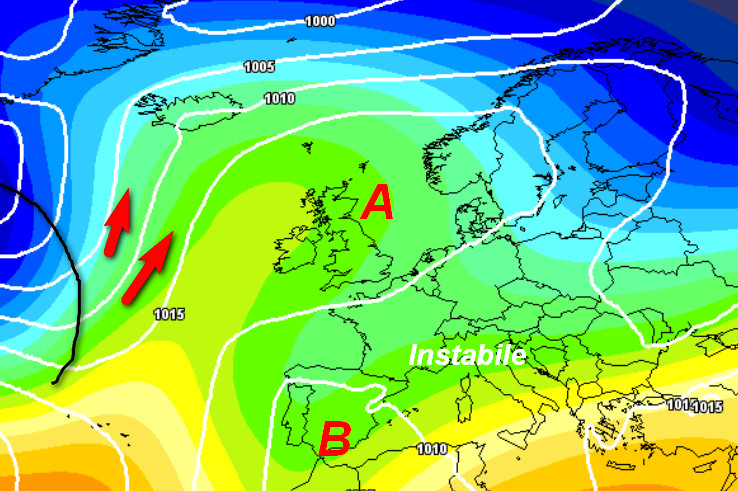 Notiamo come l’alta pressione si ergerà a nord, a parziale protezione delle Isole Britanniche e parte dell’Europa centro-settentrionale. La nostra Penisola resterà ingabbiata in una vasta circolazione depressionaria piuttosto blanda, ma in grado di rinnovare instabilità e rovesci in un contesto termico fresco, ma non freddo.