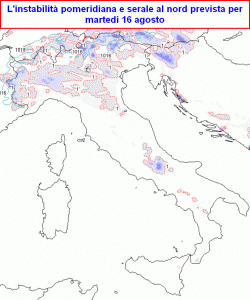 temporalesca nelle ore pomeridiane e serali, dapprima lungo le Alpi, da martedì anche sulle alte pianure, a causa di infiltrazioni di aria fresca ed instabile in quota in arrivo dal nord-est del Continente.