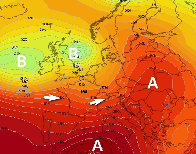 Ecco una mappa barica che chiarisce l’entità del potenziale guasto e dalla quale si nota ancora un anticiclone molto ostico da smantellare sul Mediterraneo: