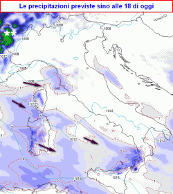 OGGI: al nord da velato a parzialmente nuvoloso e sulle Alpi occidentali addensamenti più compatti, associati a nevicate sull’alta Valle d’Aosta, anche nei fondovalle. Su Liguria ed Emilia-Romagna nel pomeriggio nuvoloso con deboli precipitazioni, nevose in Appennino dai 1200m. Migliora in serata. Al centro e sulla Sardegna nuvolosità irregolare con piovaschi sparsi su Sardegna, Mar Tirreno e coste tirreniche, più sporadici o assenti i fenomeni sul medio Adriatico. Al sud instabile sin dal mattino con locali rovesci, specie sul basso Tirreno; sarà proprio tra Calabria tirrenica, Lucania tirrenica e nord Sicilia che si concentreranno i fenomeni dal pomeriggio, mentre diverranno sporadici altrove. Temperature in diminuzione nei valori massimi, specie al nord.