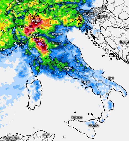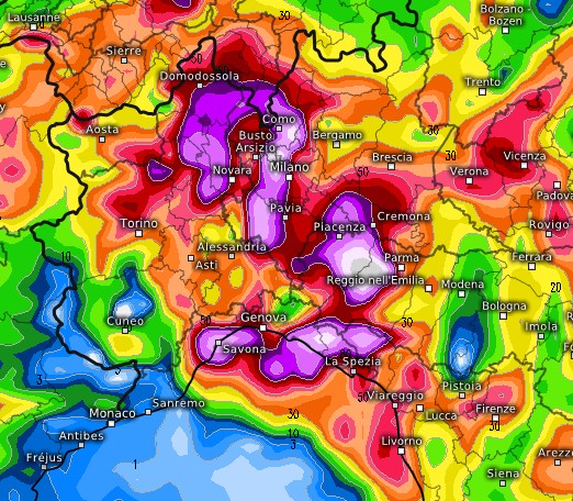 Da notare i forti nubifragi previsti anche sulla costa ligure, con due nuclei importanti, uno sul Savonese, l’altro tra Sestri Levante e le Cinque Terre.