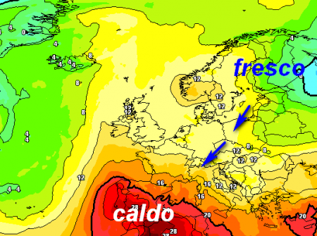 Ecco le conseguenze a 1500m dal punto di vista termico: il grande caldo insomma fallirebbe il colpo proprio sull’Italia e su diverse aree del centro-est europeo!