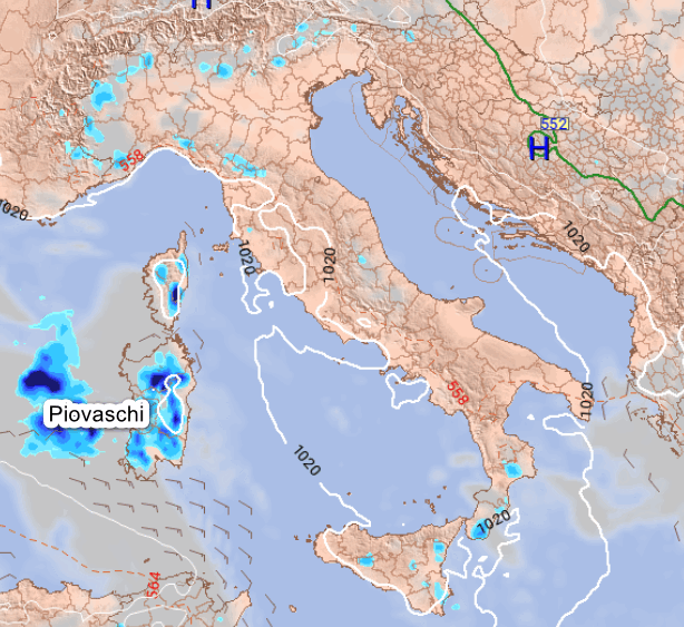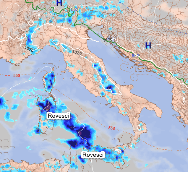 I massimi di pressione si sposteranno leggermente a nord, ma la situazione meteorologica a scala europea resterà ancora bloccata. Il relativo calo dei geopotenziali sul Mediterraneo favorirà qualche rovescio segnatamente sulle due Isole Maggiori, mentre sul resto d’Italia le piogge resteranno scarse se non nulle.
