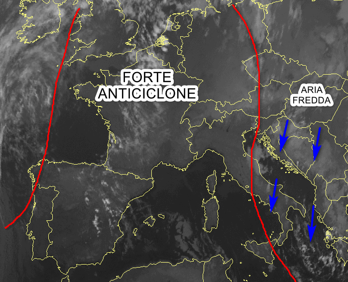 L’alta pressione ha raggiunto praticamente tutta l’Europa centro-occidentale. L’Europa orientale è invece alle prese con correnti fredde settentrionali che seguitano ad interessare anche il medio-basso Adriatico ed il meridione. Su queste regioni soffiano ancora forti venti settentrionali con rovesci seppure locali ed alternati a schiarite. Durante la giornata di martedi 7 ottobre la situazione non cambierà, mentre da mercoledi 8 l’alta pressione si estenderà anche al sud, facendo cessare l’instabilità in loco.