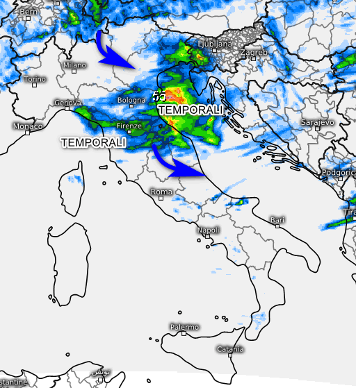 Temporali al mattino tra Veneto orientale e Friuli, in attenuazione entro mezzogiorno. Sempre in mattinata temporali sulla Campania, in estensione a parte della Calabria Tirrenica, anch’essi in attenuazione prima di mezzogiorno. Nel primo pomeriggio qualche temporale sulla Puglia, per il resto assenza di fenomeni.