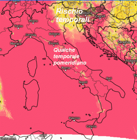 Addensamenti tra Veneto orientale, Trentino e Friuli con qualche temporale. Nel pomeriggio non si escludono sporadici temporali anche nelle aree interne dell’Italia centro-meridionale; fenomeni in attenuazione in serata. Su tutte le altre regioni tempo stabile e soleggiato.
