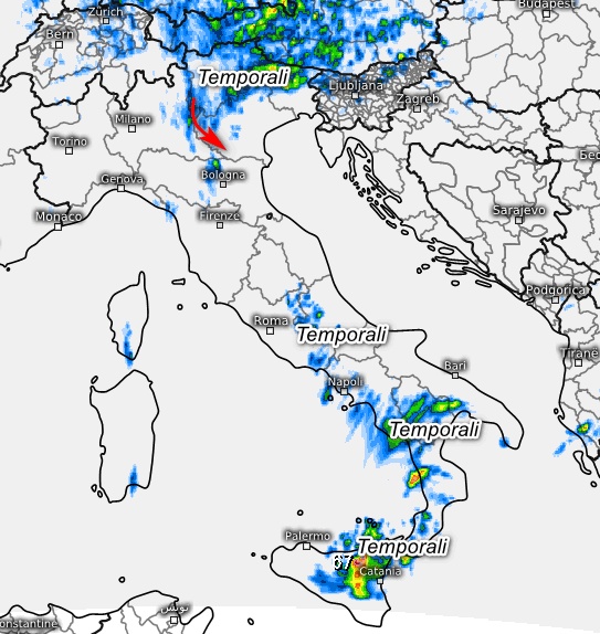 Temporali intensi e maggiormente diffusi saranno possibili tra la Sicilia e la Calabria, con possibile interessamento anche delle coste e del mare. Temporali anche su gran parte della Campania e nel basso Lazio. Al nord temporali essenzialmente ubicati su Alpi e Prealpi centro-orientali, con rischio di sconfinamenti sulle aree di pianure sottostanti in serata, in cessazione poi nelle ore notturne.