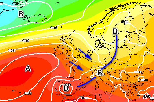 Le alte pressioni, forti e stabili, si manterranno a distanza dal cuore della scena meteorologica europea. Ad ovest, troveremo l’alta pressione delle Azzorre, mentre più ad est un lembo dell’alta pressione africana. Nel mezzo, si aprirà una piccola “ferita” barica, una zona di bassa pressione che favorirà un tempo instabile, in particolare al Nord Italia e su parte del Centro. Questa configurazione suggerisce che le condizioni per precipitazioni e temporali saranno ben presenti su queste aree.