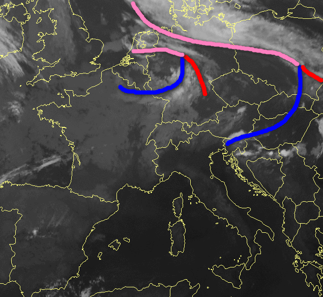 La coda dell’ennesima perturbazione atlantica in scorrimento sull’Europa centrale ha abbandonato definitivamente l’estremo nord-est italiano, dopo gli ultimi temporali di questa notte. Vediamo l’immagine satellitare delle ore 8 di martedi 22 luglio: