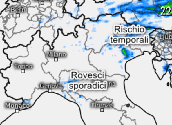 Rischio di qualche temporale pomeridiano solo sull’estremo nord-est, in modo particolare su Veneto orientale e Friuli. Fenomeni relegati ai rilievi con basso rischio di sconfinamenti in pianura. Qualche isolato rovescio pomeridiano sarà possibile anche sull‘Appennino Tosco-Emiliano, per il resto gran sereno.