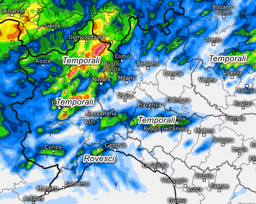 Temporali segnatamente tra il pomeriggio e la serata, ma senza escludere qualche fenomeno prefrontale sulla Liguria centro-occidentale al mattino. Temporali segnatamente su Val d’Aosta orientale, Piemonte, ovest Lombardia, Oltrepò Pavese fino al Reggiano. Temporali anche al nord-est, tra alto Veneto, Trentino e Friuli, sul resto del settentrione tempo asciutto. Al centro e al meridione tempo più stabile ed aumento delle temperature stante l’attivazione di venti di Scirocco.