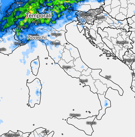 Passiamo adesso alla sommatoria delle precipitazioni attese in Italia nella giornata di mercoledì 4 giugno: