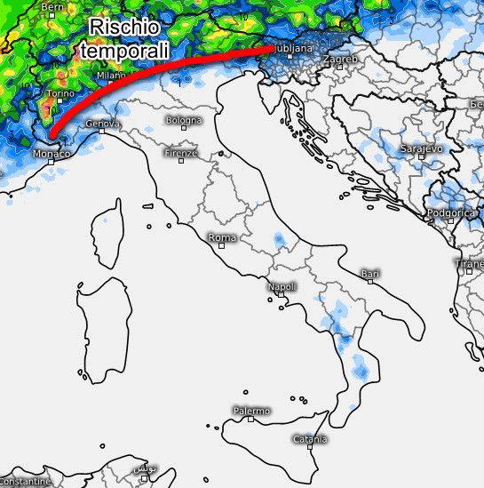 Tempo soleggiato e caldo su gran parte d’Italia. Gli unici temporali agiranno tra il pomeriggio e la serata su Alpi, Prealpi, con possibili sconfinamenti in serata sulla Pianura Piemontese più occidentale e settentrionale e forse sull’alta pianura lombarda (a nord della linea rossa). Sul restante settentrione bel tempo a parte nubi sulla Liguria al mattino e alla sera senza conseguenze.