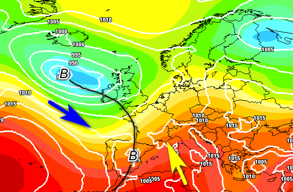 La saccatura sull’Europa occidentale sarà in fase di formazione. Le correnti umide di Scirocco determineranno un AUMENTO delle TEMPERATURE al centro-sud, mentre al nord avremo l’attivazione dei primi temporali tra pomeriggio e sera, che sui settori più settentrionali saranno anche intensi.