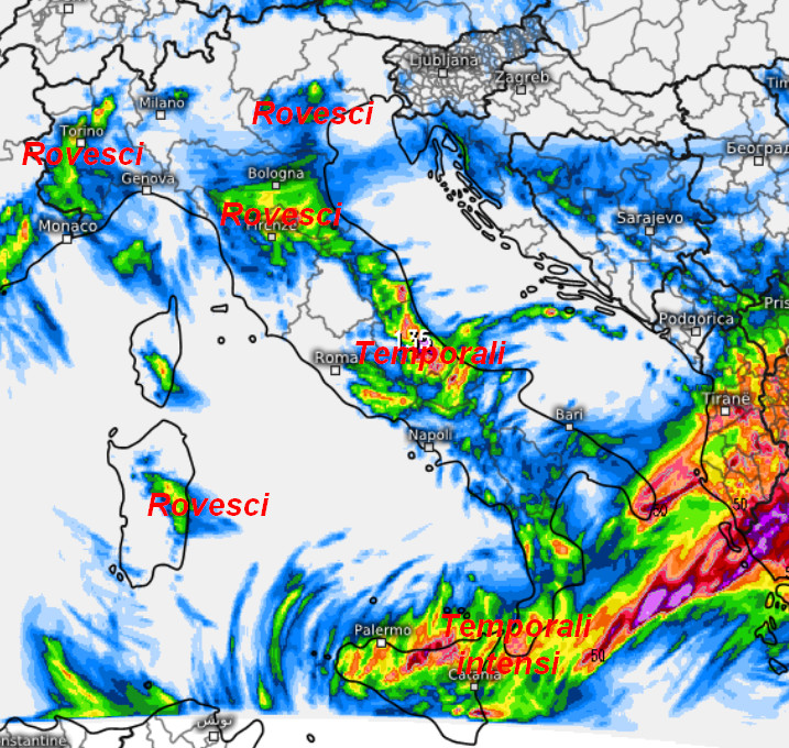 I temporali più intensi riguarderanno la Sicilia, la Calabria e la punta estrema della Puglia. Tra pomeriggio e sera il maltempo inizierà ad alleggerirsi sulla Sicilia, mentre i temporali si concentreranno sul settore ionico. Rovesci abbastanza intensi colpiranno nell’arco della giornata l’Abruzzo, mentre tra la notte e la mattinata di venerdi anche l’Emilia Romagna ed alcune aree del nord-ovest, specie il Piemonte occidentale. Nell’arco della giornata la situazione migliorerà al nord, mentre comparirà qualche rovescio sulla Sardegna sud-orientale, mentre i temporali più forti si trasferiranno tra lo Ionio e la Puglia.