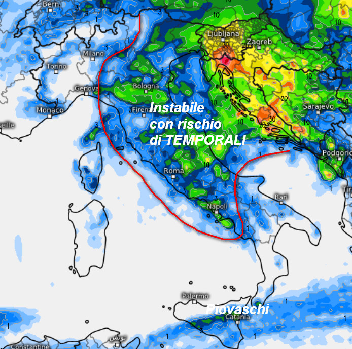 Ancora tempo inaffidabile in Italia, segnatamente nella giornata di venerdi 24. quando saranno ancora probabili rovesci e temporali su diverse regioni.