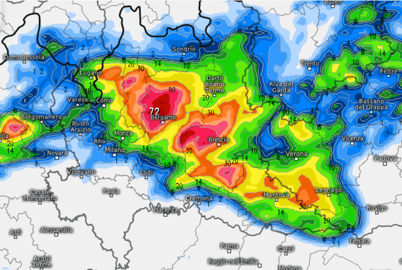 Temporali anche molto intensi scoppieranno tra Bergamasco, Bresciano, Veronese e Mantovano, fino a raggiungere il Triveneto. Si tratterà di temporali localmente accompagnati da grandine. Qualche temporale sarà possibile anche sull’alto Piemonte, mentre a sud del Po non si avranno fenomeni. Questi temporali si attenueranno nel corso della mattinata di sabato con l’incedere del soleggiamento diurno e nel pomeriggio si presenteranno in maniera decisamente più sporadica sui rilievi alpini e lungo la dorsale appenninica centro-meridionale. Si tratterà del primo atto del cambiamento che sarà avvertito su tutto il settentrione nella giornata di domenica 6 luglio.