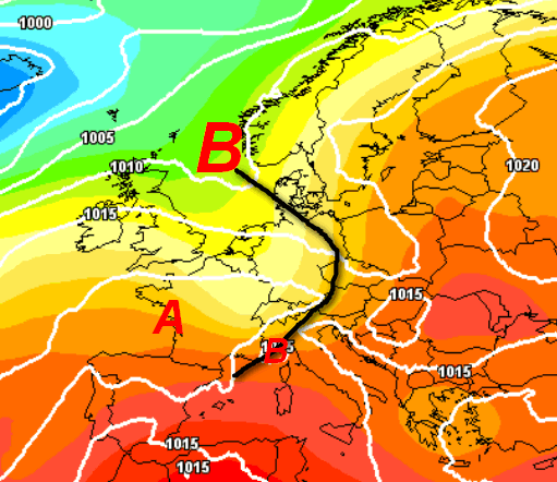 La perturbazione verrà ospitata da un incavo abbastanza stretto tra due zone di alta pressione. Ciò significa che una volta transitata, il tempo tornerà STABILE e CALDO durante il prossimo week-end.
