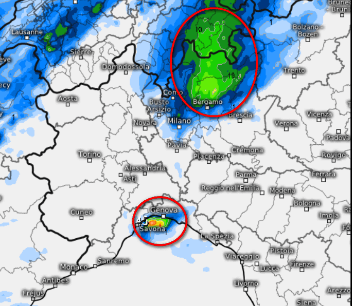Due zone “nevralgiche”: il triangolo tra Como, Bergamo, Brescia e la provincia di Genova, soprattutto le aree poste tra il Capoluogo ed Arenzano. Sul resto del settentrione fenomeni meno probabili e sul resto d’Italia assenti.