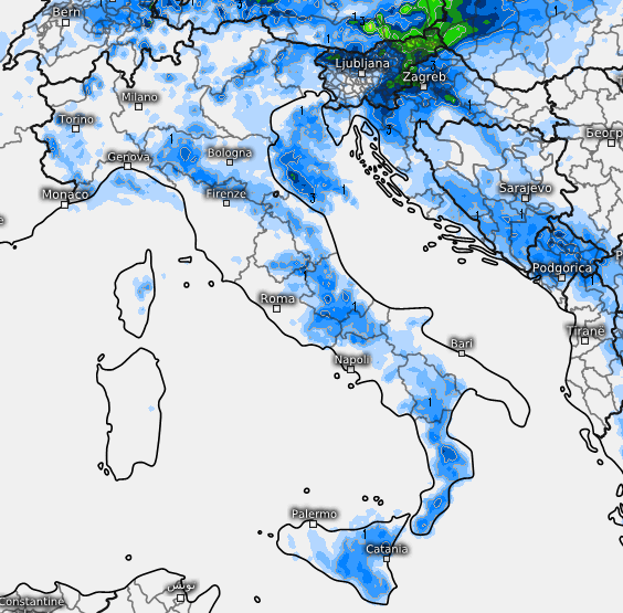 Sul fronte del temporali, questa è la sommatoria dei fenomeni attesi in Italia fino alla mezzanotte prossima: