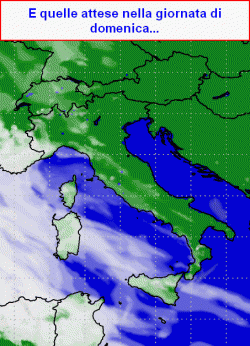 NUVOLAGLIA: le nubi alte del fine settimana disturberanno essenzialmente le isole maggiori e le regioni più occidentali, ma il sole riuscirà comunque a splendere a tratti anche su queste zone. Più insistente e fastidiosa la nuvolosità prevista da lunedì a ridosso delle isole e in genere sul Tirreno, oltre a quella cumuliforme che si formerà lungo la dorsale appenninica tra martedì e mercoledì. Un flusso di correnti umide e miti meridionali, scivolerà su un mare appena più fresco, favorendo questo genere di addensamenti.