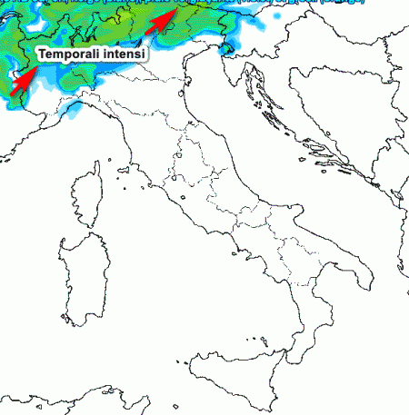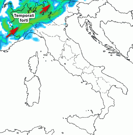 Temporali in arroccamento sulle alte pianure e sulle Alpi stante un rinforzo della ventilazione da sud a tutte le quote. Sul resto del nord tempo asciutto, così come sul resto d’Italia.