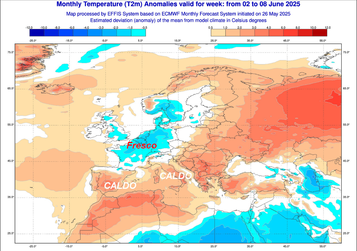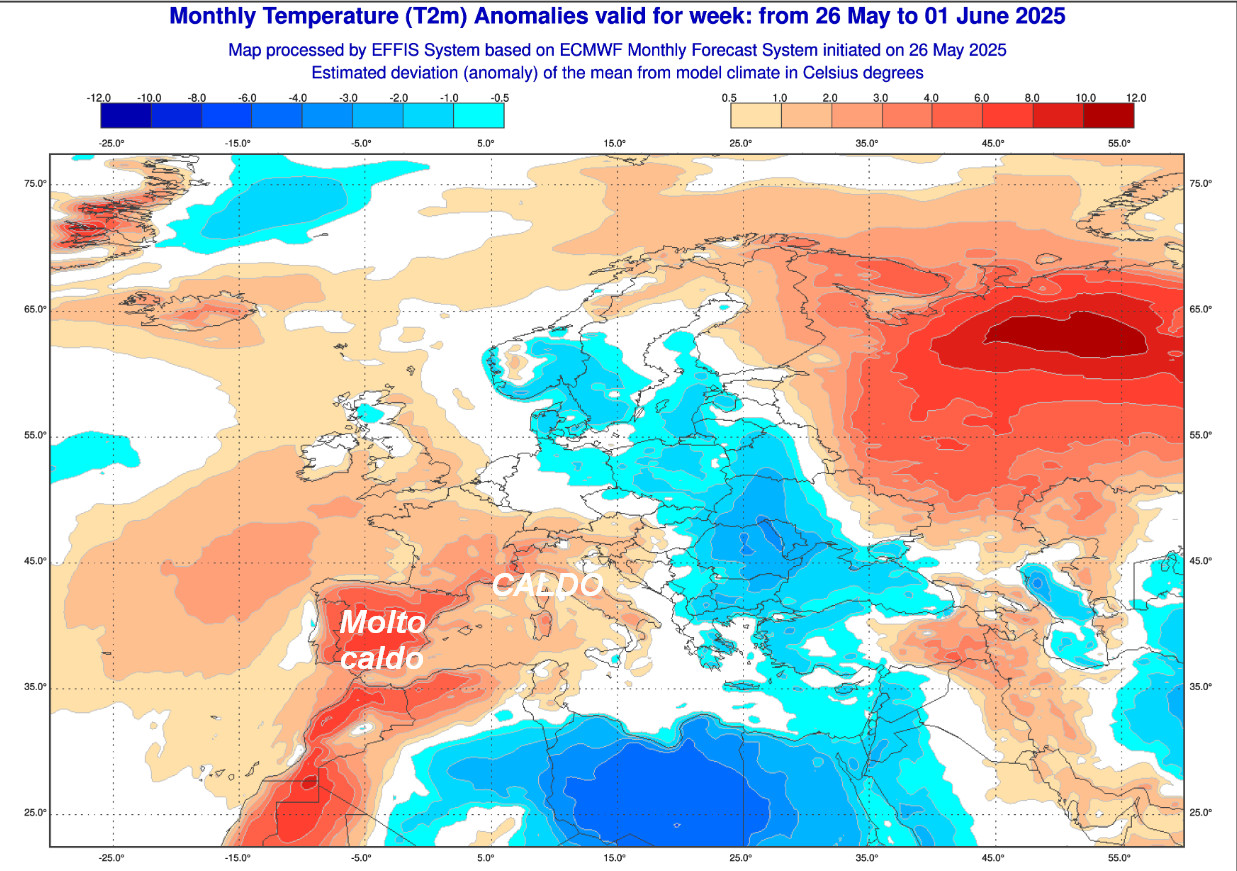 Una panoramica delle anomalie termiche e precipitative in Italia fino a domenica 8 giugno secondo il centro di calcolo ECMWF