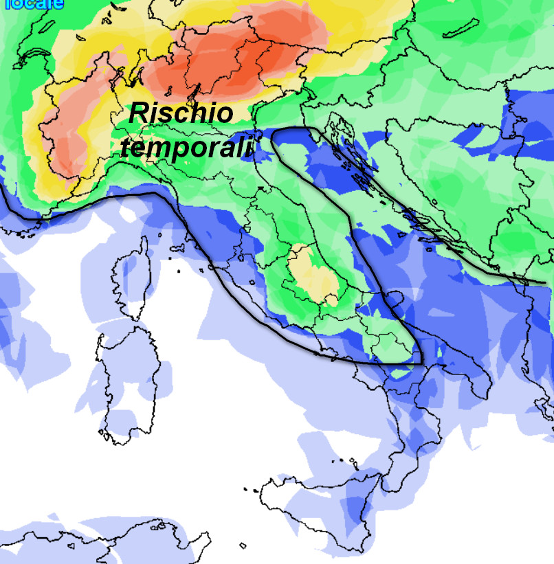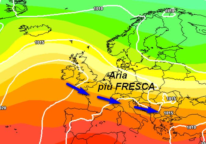 La cupola bollente dovrebbe finalmente iniziare a “sgonfiarsi”, indebolita sul suo fianco settentrionale. Questo cedimento permetterebbe l’ingresso di correnti relativamente più fresche ed instabili di matrice atlantica, che dall’Europa centrale punterebbero verso il centro-nord della nostra Penisola.