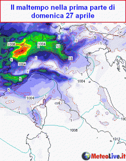 LUNEDI 28: instabilità su tutto il Paese con fenomeni temporaleschi sparsi e ulteriore calo delle temperature, anche rovesci di neve sulle Alpi dai 1500m e sulle cime appenniniche, ma
