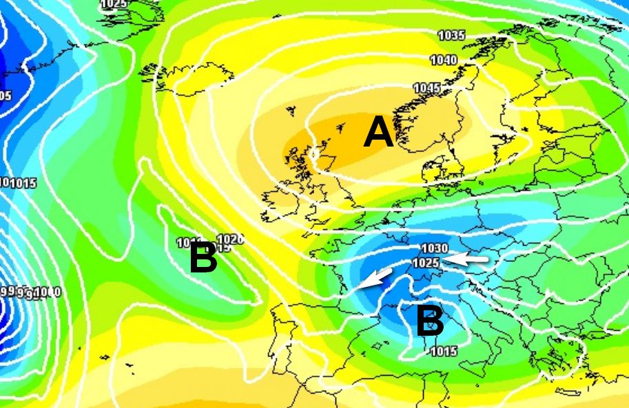 Il tutto scaturirebbe dalla risalita e dal rafforzamento di un anticiclone sul nord Europa, ipotesi supportata anche dal modello GFS sempre per lo stesso periodo: