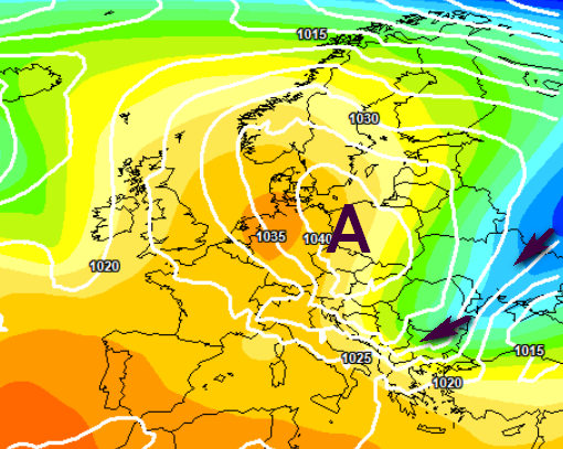 Nonostante la presenza dell'anticiclone, molte mappe indicano la possibilità che aria fredda possa inserirsi da est sul suo bordo meridionale, favorendo una diminuzione delle temperature e dell'instabilità. Vediamo dove e quando.