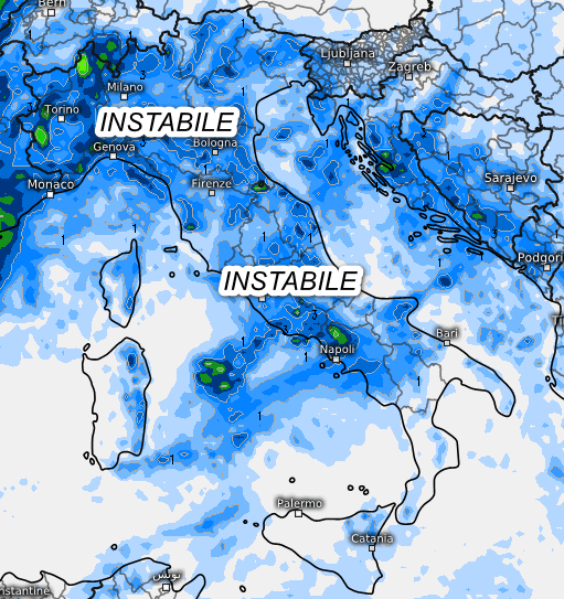 C’è poco da dire: tempo instabile su tutto il nord e al centro con rovesci, temporali alternati a pause soleggiate anche lunghe. Più stabile il tempo all’estremo sud e sulle Isole dove il rischio di pioggia sarà minore. Temperature ancora fresche al centro-nord, miti al sud e sulle Isole.