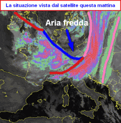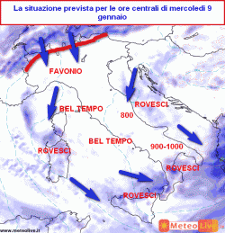 Il fronte freddo valicherà le Alpi durante la prossima notte; nella giornata di domani, mercoledi 9 gennaio, l’aria fredda dilagherà sull’Itaia con forti correnti settentrionali.