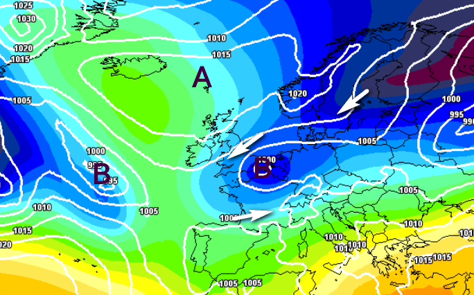 La fase di maltempo che si attiverà sul nostro Paese a partire da domenica 9 marzo ci accompagnerà ad intervalli almeno sino alla metà del mese, a causa di una particolare disposizione barica che prima ancora di commentare, vi mostriamo in questa mappa: