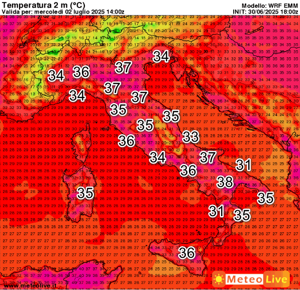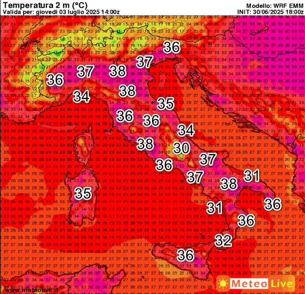 I benefici imposti da eventuali situazioni temporalesche locali saranno brevi ed isolati. Come vedete, il quadro termico sull’Italia seguiterà ad essere critico, con i 36-38° che potrebbero essere valicati su diverse aree del nostro Paese.